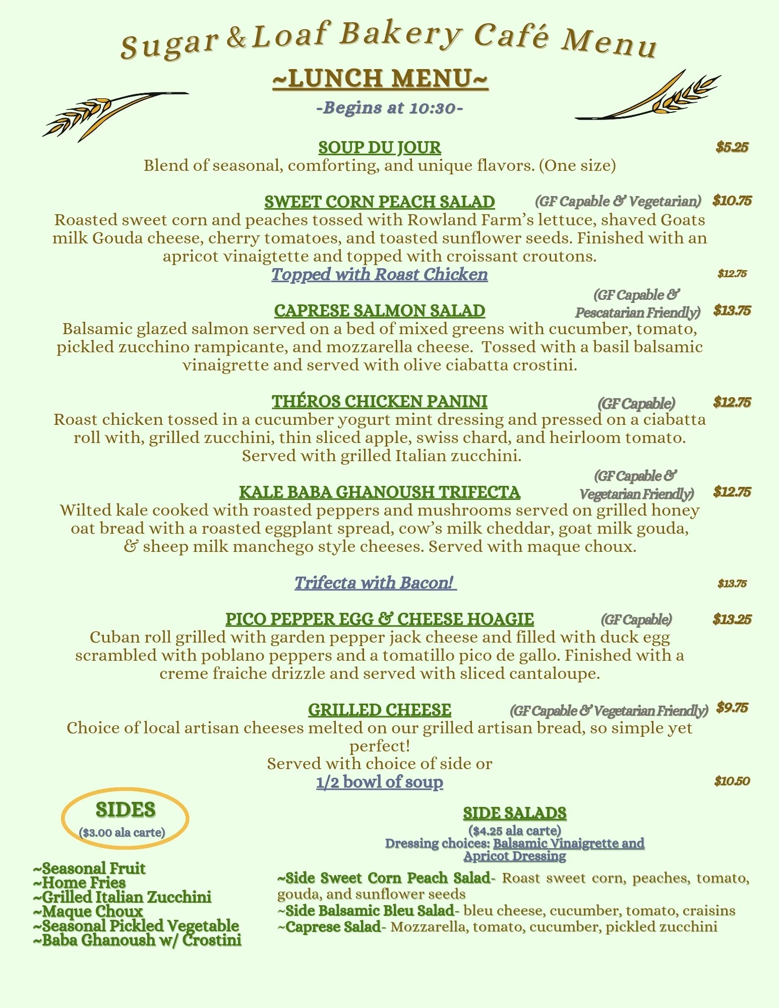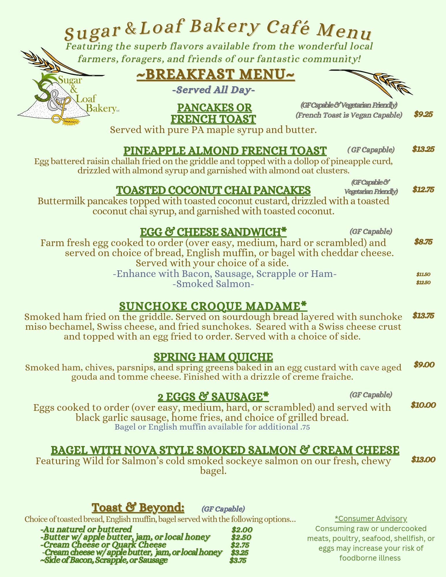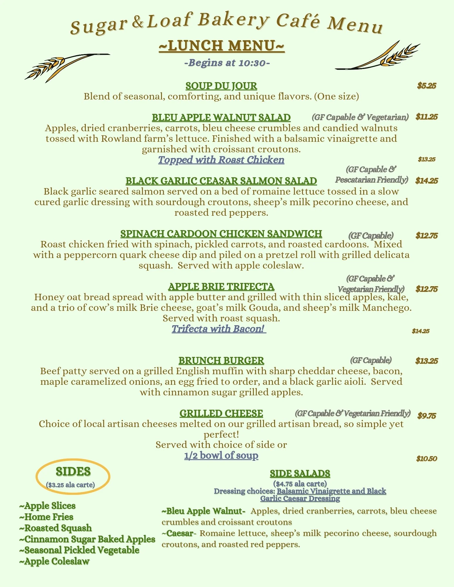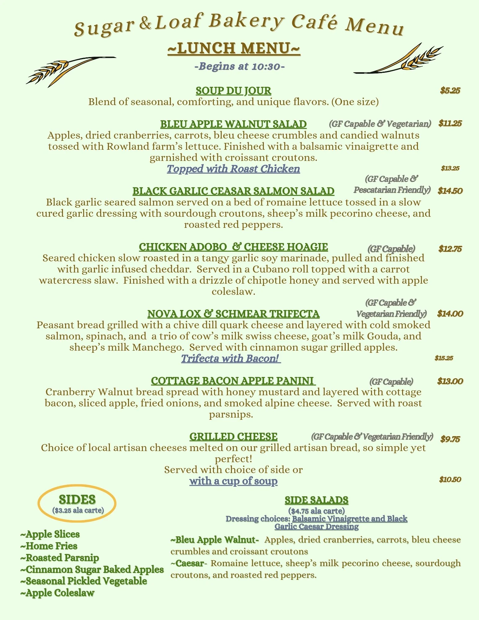 We also accept to go orders, call the cafe (570-579-1724) to place an order.
